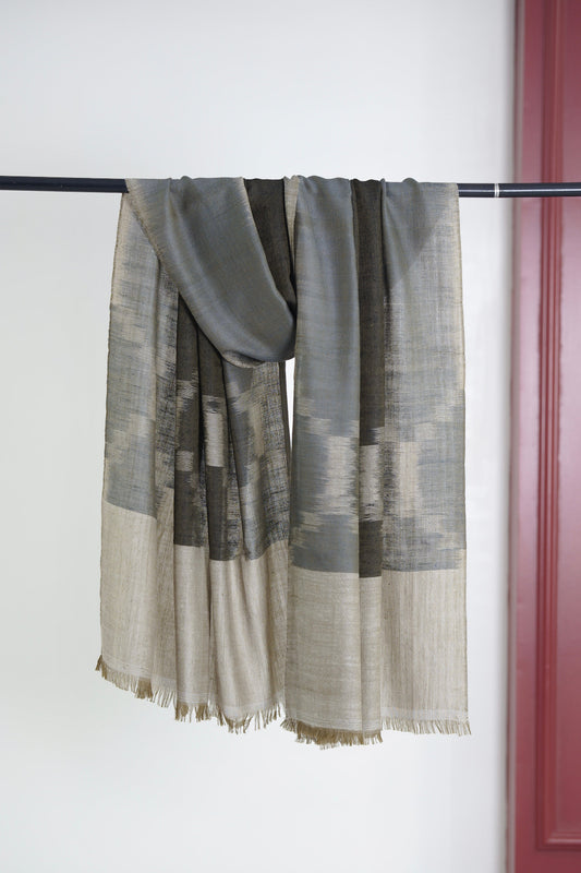 HANDWOVEN PASHMINA CHARCOAL GREY IKAT WEAVE STOLE
