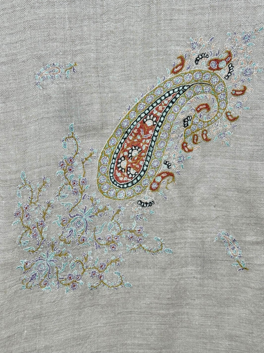 Pure Pashmina Soft Handmade Versatile Wear Scarf Silver Paisley Design