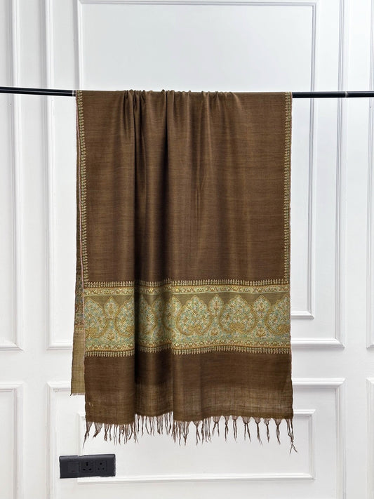 VINTAGE GOLDEN EMBROIDERED SOFT HANDMADE MEN’S WINTER WEAR PURE PASHMINA SHAWL