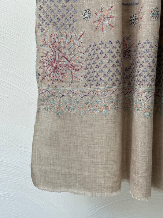 From intricate stitches to splendid designs, the true work of art done in the Kashmir valley. The skilled concentration of one takes a huge passion to define the exqusite motif, varying from 5 - 500 stitches per centimetre over the chilly cold season.