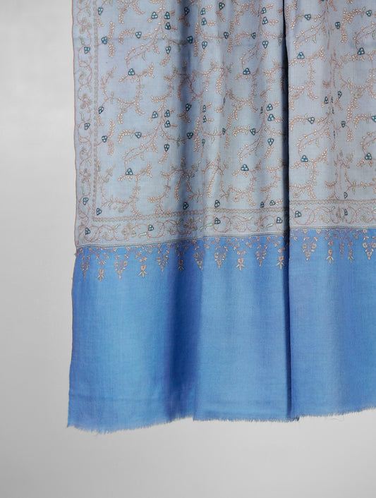 DUSK BLUE STYLE CORNERED BUTI PASHMINA SHAWL