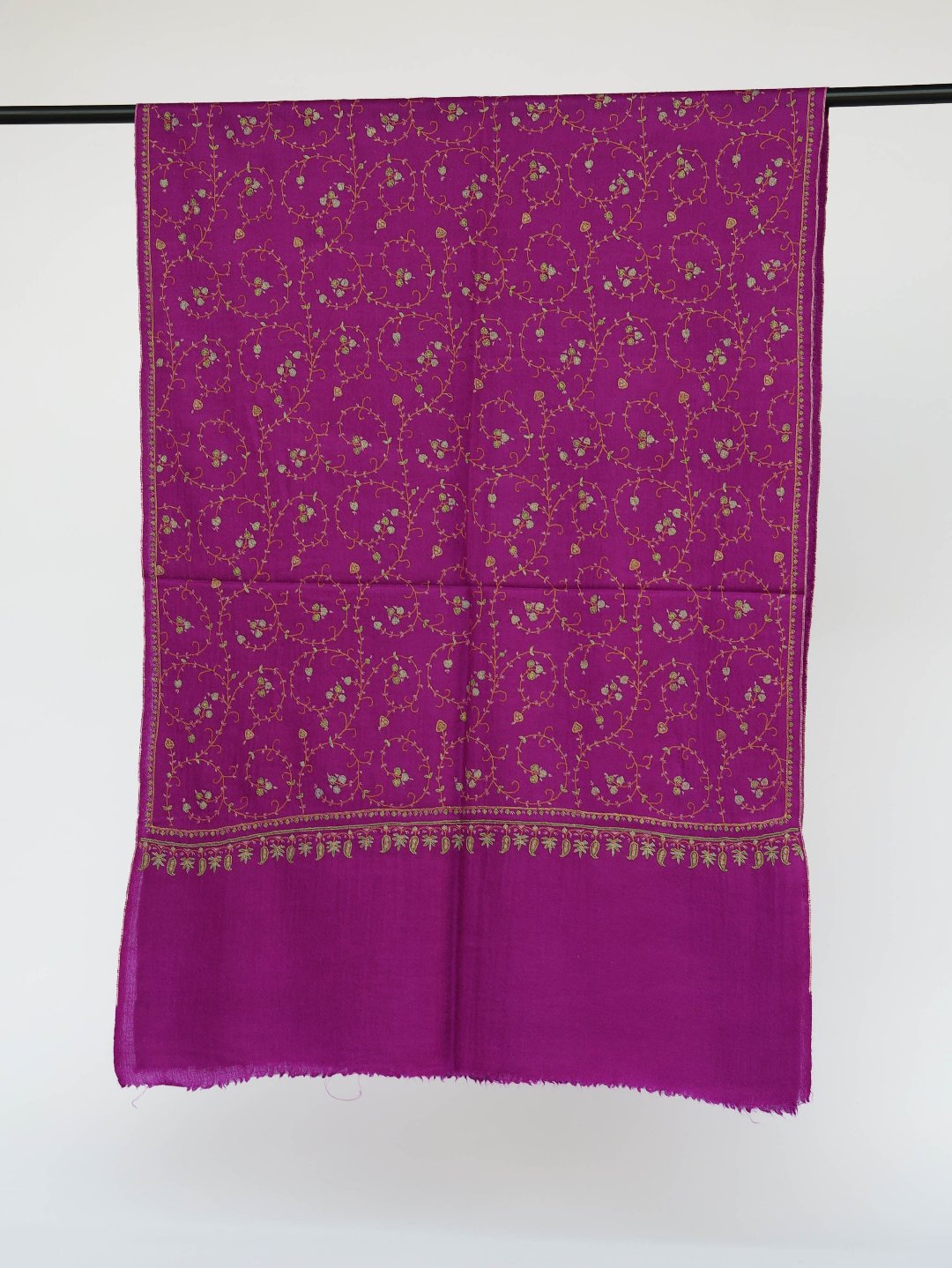 Traditionally Handcrafted Kashmiri scarf will serve as a beautiful gift for yourself by giving you luxurious elegance and warmth. Because of its soft cashmere feel, beautiful needlework, and handcrafted Kashmiri skills, it is set to be the piece that she will wear time and time again in her wardrobe.