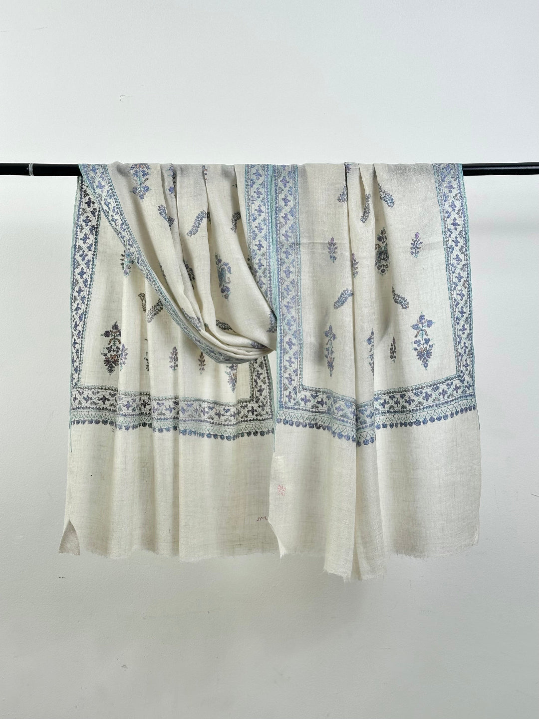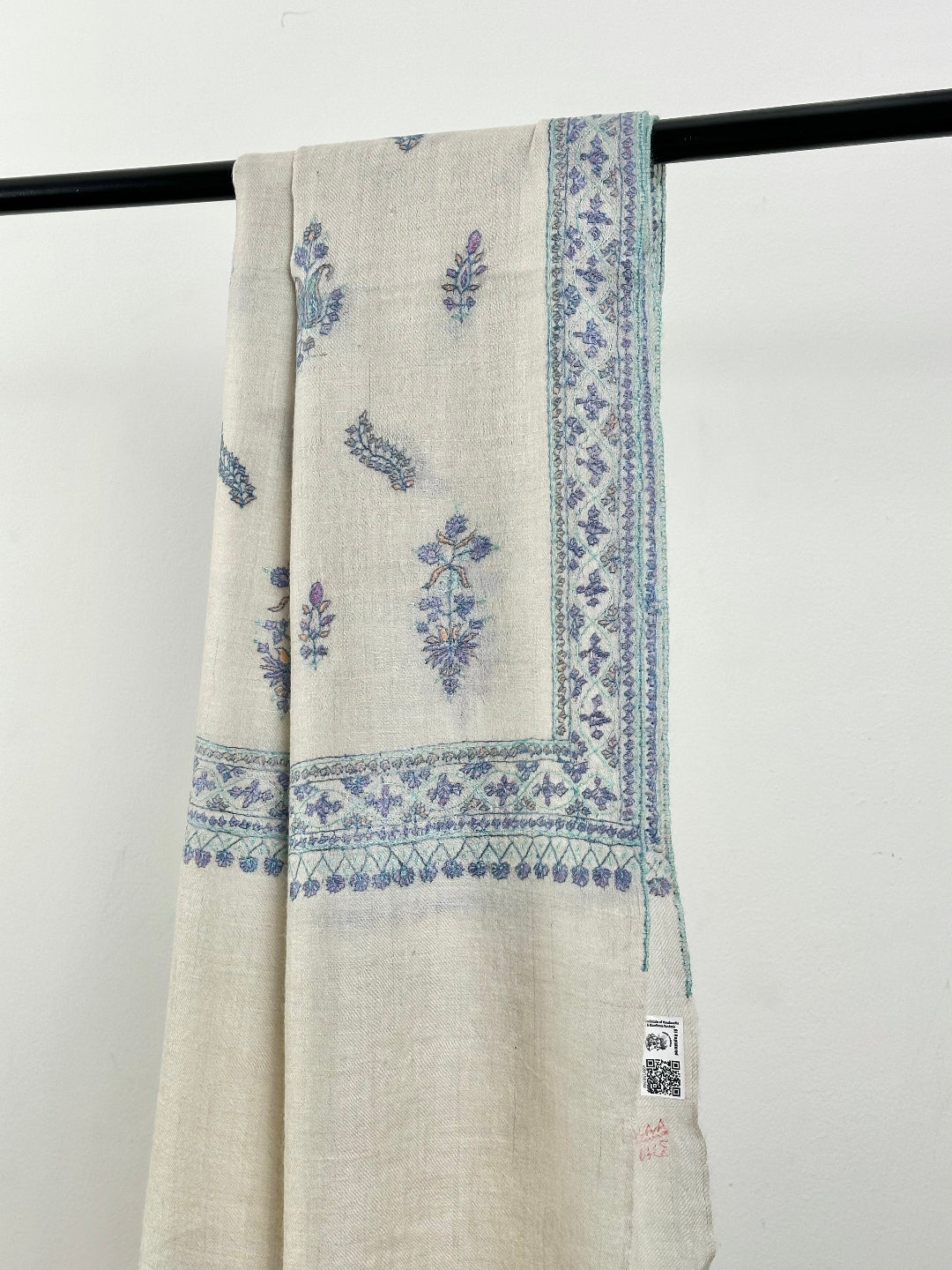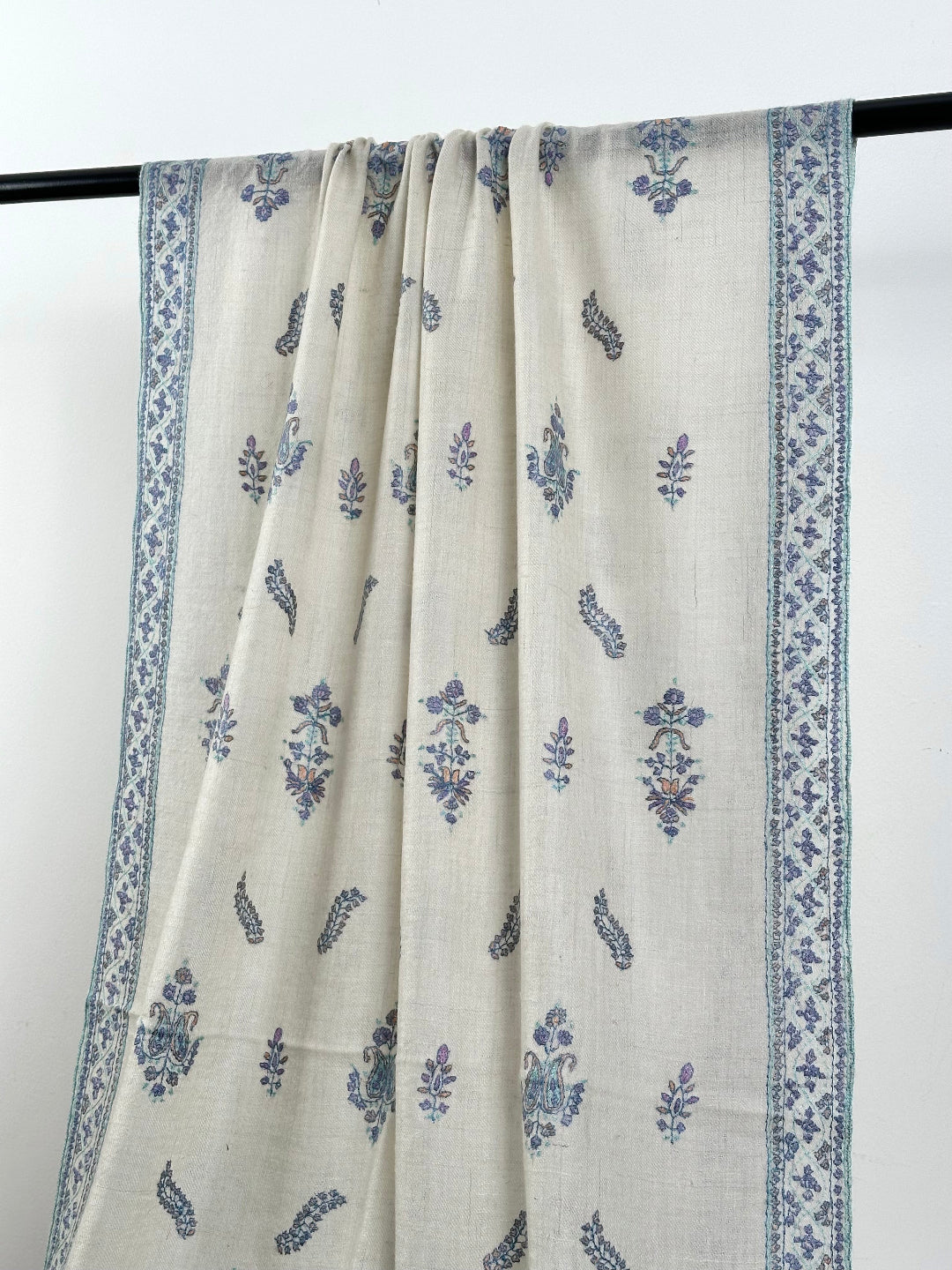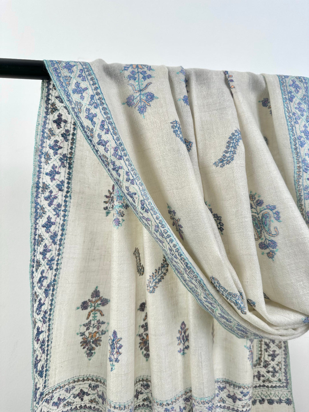 Due to its exquisite needlework and the craftsmanship of Kashmiris, this particular piece has a mellow feel to its cashmere, which sets it apart, and guarantees that this piece will be one that she wears time and time again.